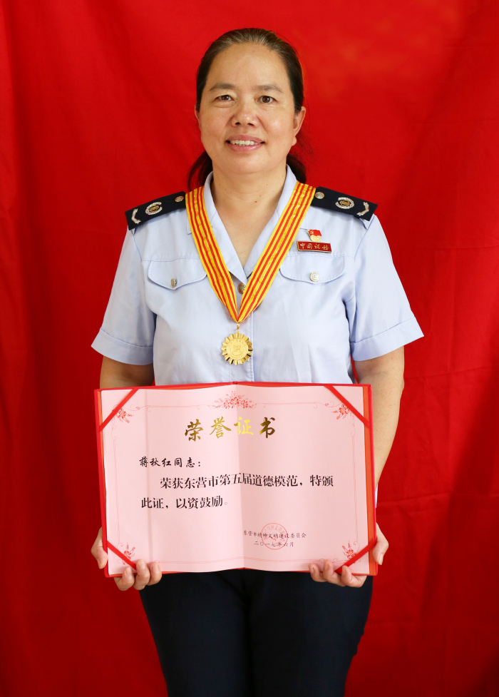 8月18日,东营市隆重召开全市第五届道德模范表彰会议,对全市5个类别的10名道德模范进行表彰。会上,广饶县地税局蒋秋红同志被表彰为敬业奉献道德模范。