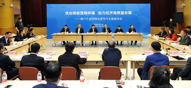 3月30日上午,在第27个全国税收宣传月即将到来之际,国家税务总局以“优化税收营商环境,助力经济高质量发展”为主题召开税企座谈会。来自电信业、房地产业、制造业、交通运输业和新能源产业等行业的10位企业家代表相聚北京,谈变化、讲感受、畅心声、提建议,为税收促进经济高质量发展建言献策。
