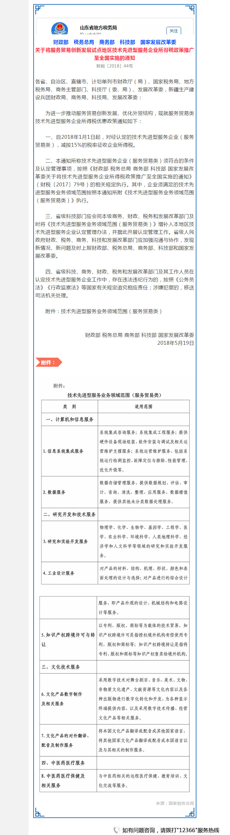 好消息!技术先进型服务企业所得税优惠政策推广至全国 发布20180530-01