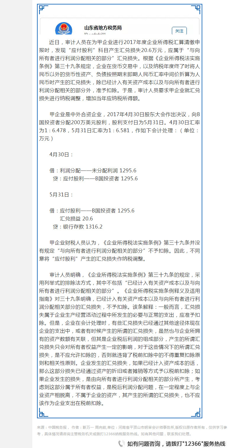 应付股利产生的汇兑损失应纳税调整 发布20180611-03