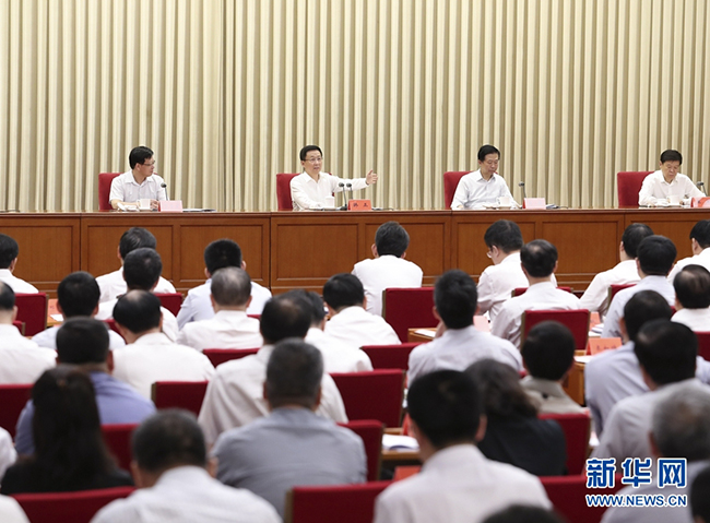 6月1日,国税地税征管体制改革座谈会在北京召开,中共中央政治局常委、国务院副总理韩正出席会议并讲话。 新华社记者 庞兴雷 摄