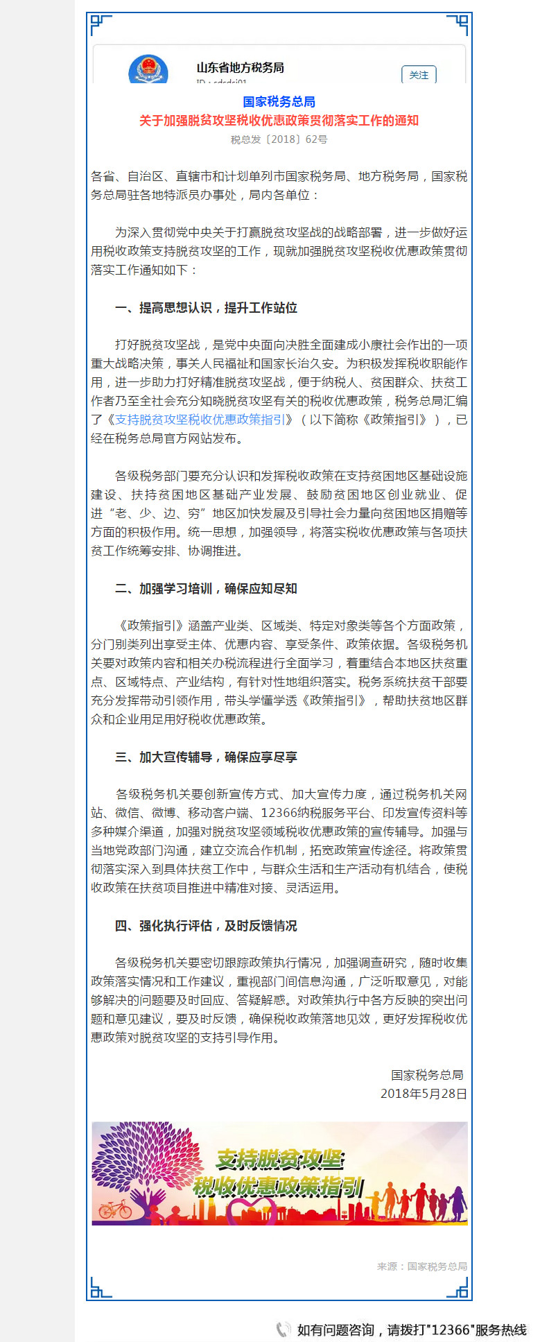 税务总局要求加强脱贫攻坚税收优惠政策的贯彻落实 发布20180607-02